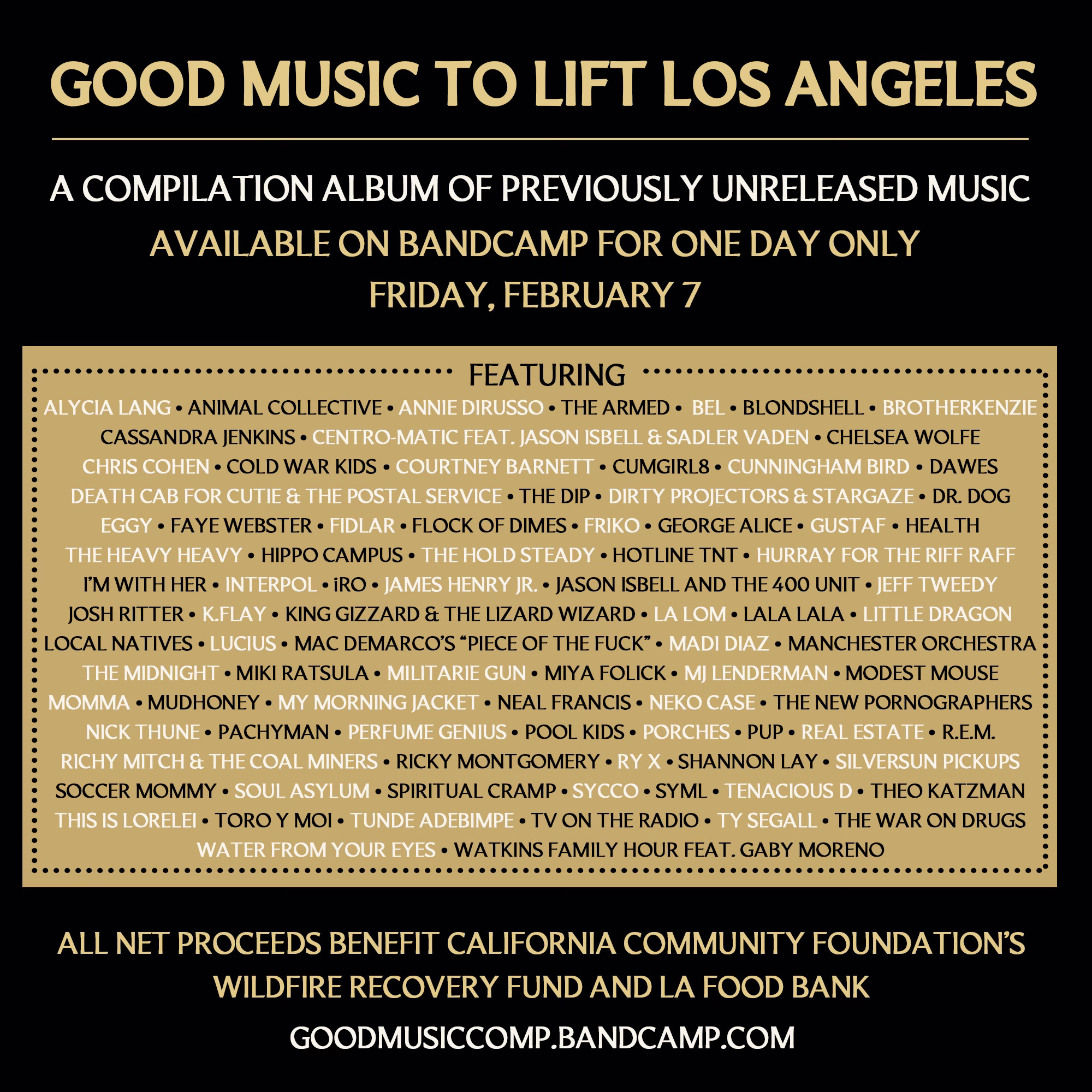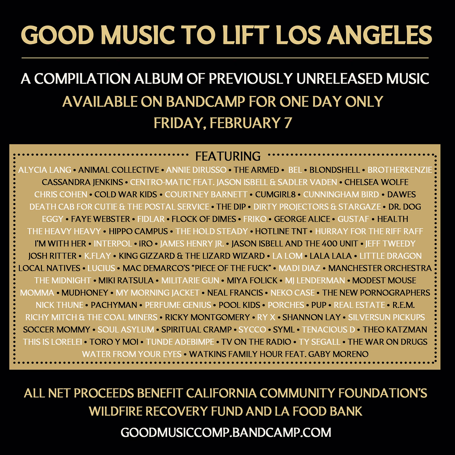 However, if you are hungry for something exciting and new—and want to support a good cause in the meantime—I’ve contributed a song to an enormous compilation from Good Music benefiting fire relief in Los Angeles. It is out today, Bandcamp Friday, and will be available to download for one day only! Here’s a link to listen and support, if you’re able.